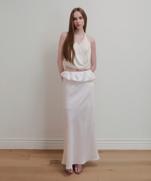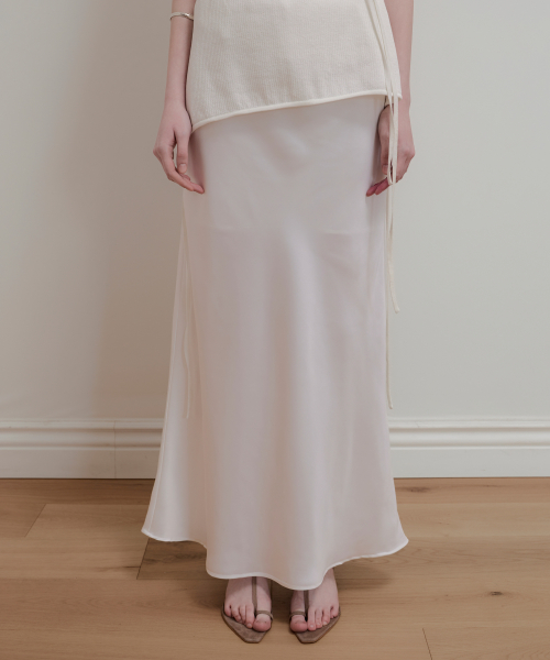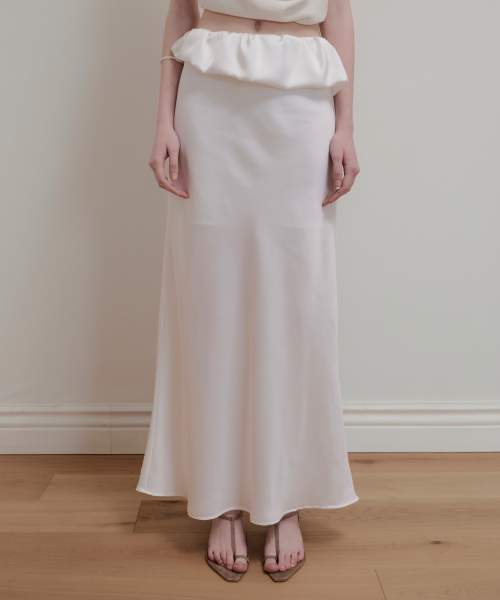 BALLOON DETAIL SATIN SKIRT - WHITE