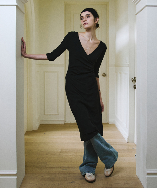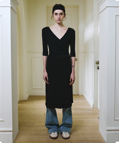 Shirring Wrap Dress (Black)