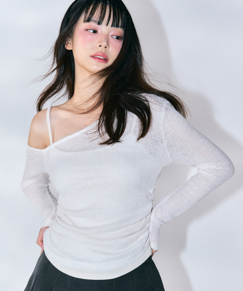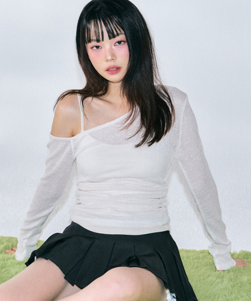 비스킷 시스루 니트 레이어드 세트 [CHARCOAL]