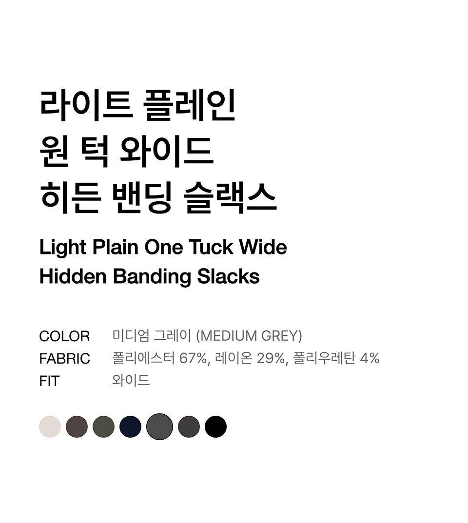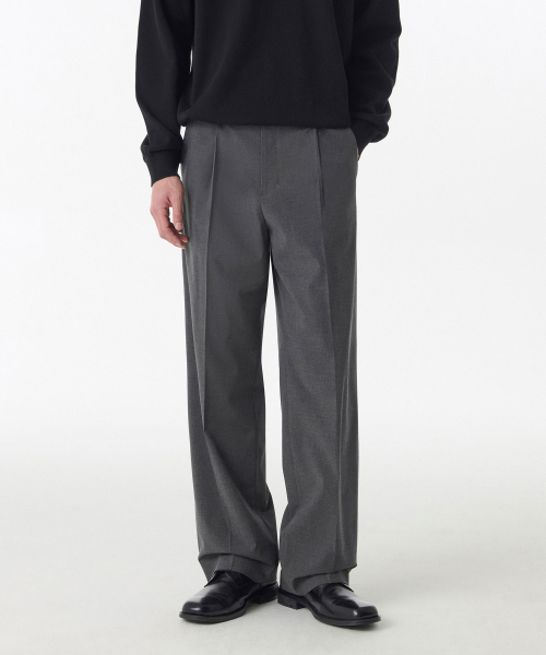 라이트 플레인 원 턱 와이드 히든 밴딩 슬랙스 [미디엄 그레이]