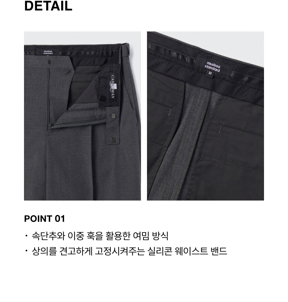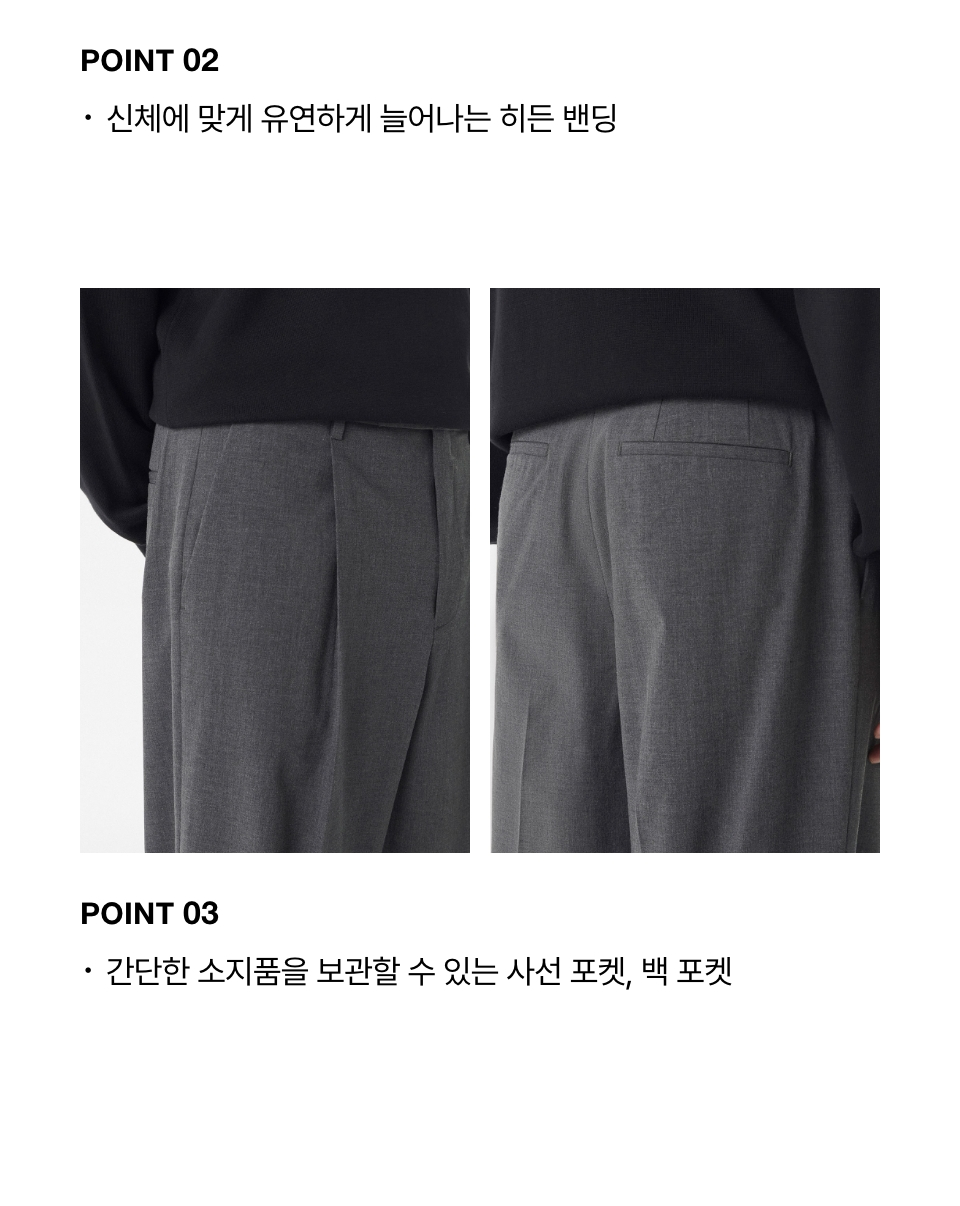 딥 턱 오버랩 와이드 히든 밴딩 슬랙스 [미디엄 그레이]