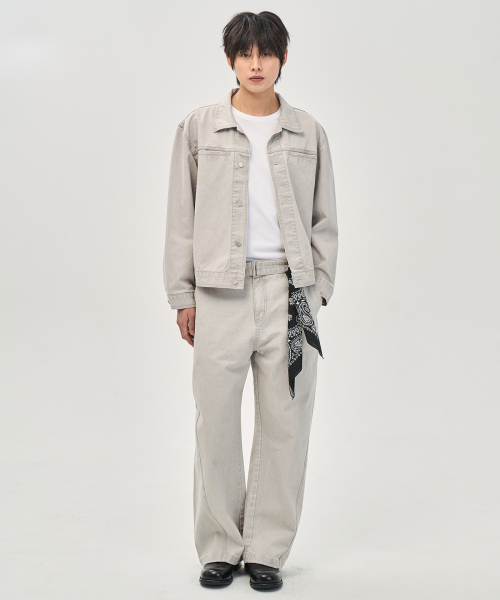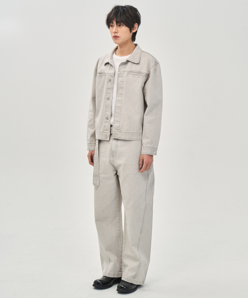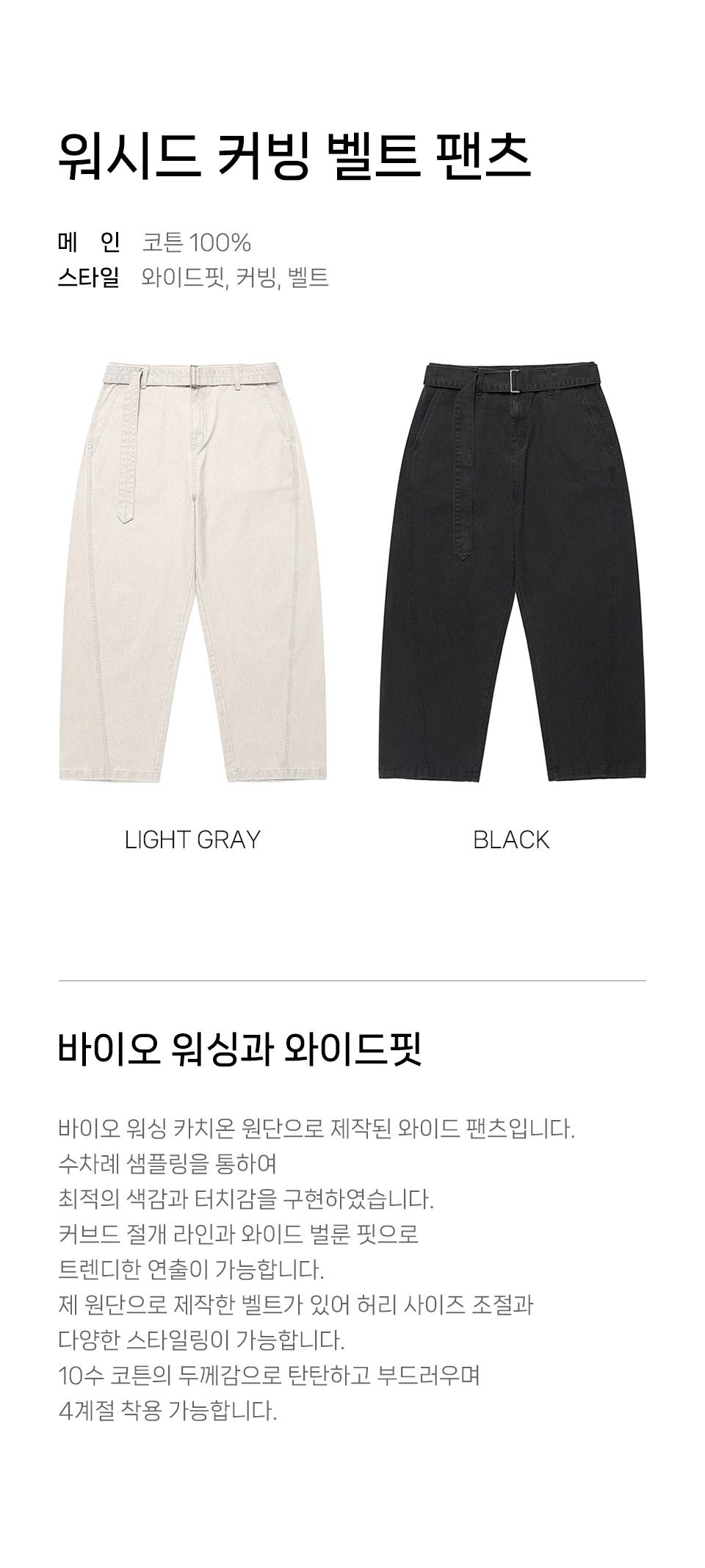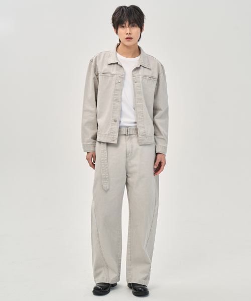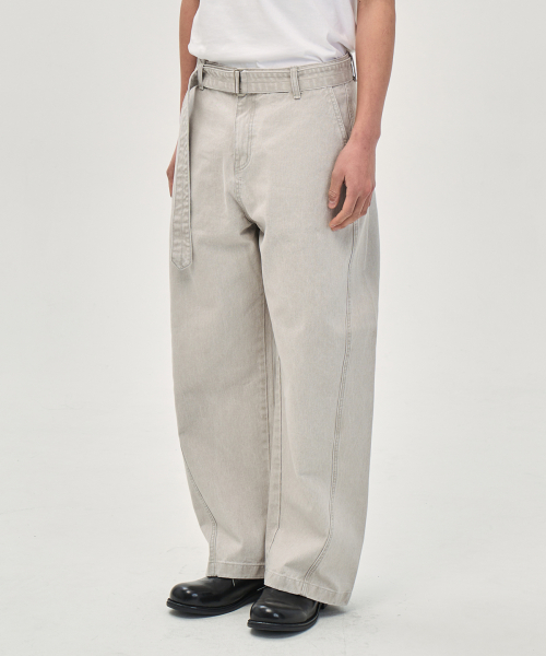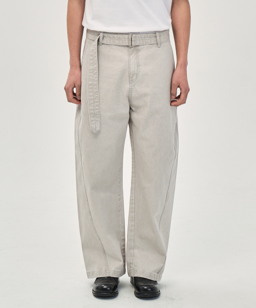 워시드 커빙 벨트 팬츠 (LIGHT GRAY)