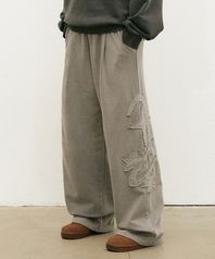샤이니 아플리케 와이드 스웨트팬츠 스톤그레이