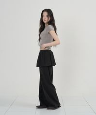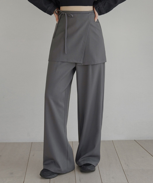 랩 스커트 + 와이드 슬랙스 팬츠의 구성으로