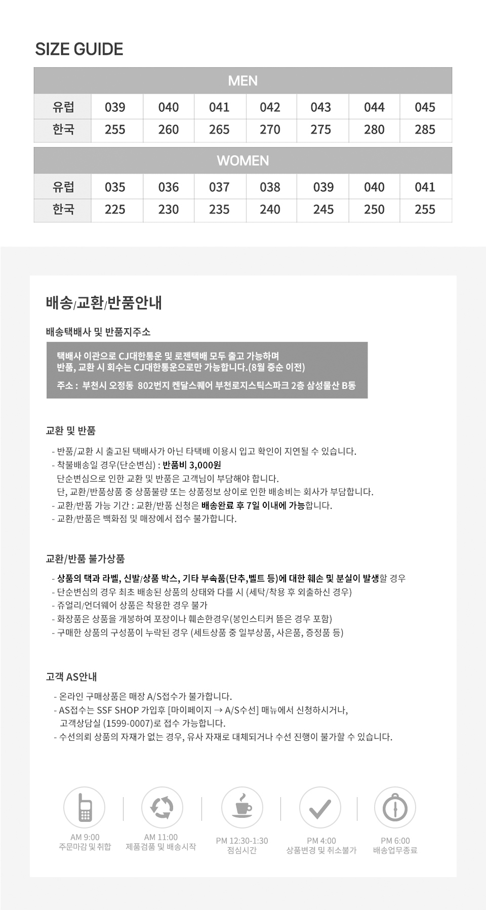 040,041,042,043,044(하단의 사이즈조견표 참조)
