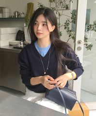 [여울 PICK] All-Day Cotton V-neck Knit - Darknight Navy