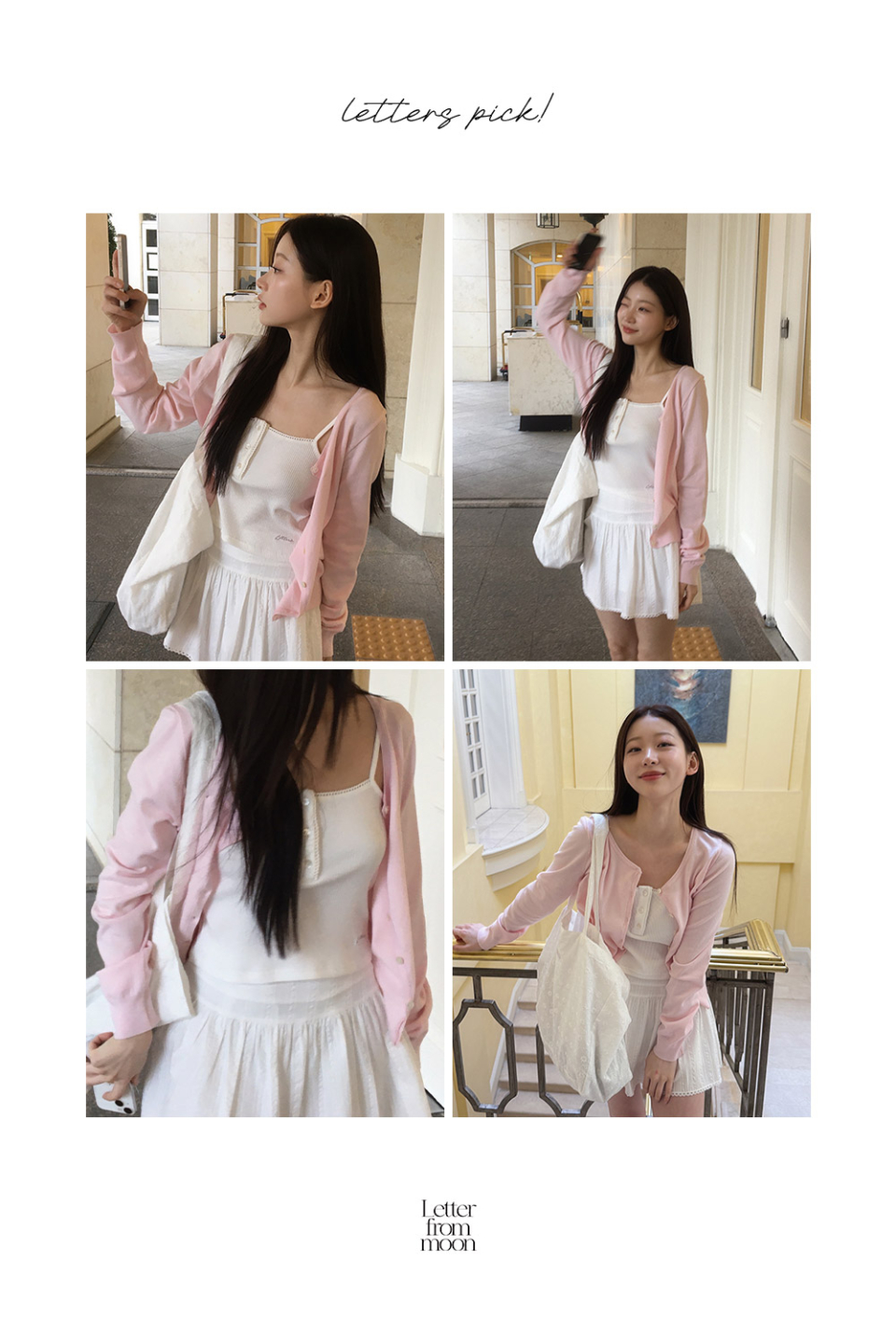 [남서연 Pick] 레터즈 레이스 버튼 홀터넥 탑 ( 멜란지그레이 )