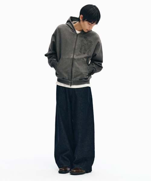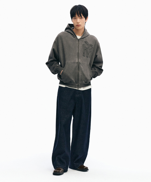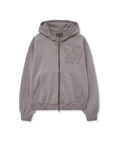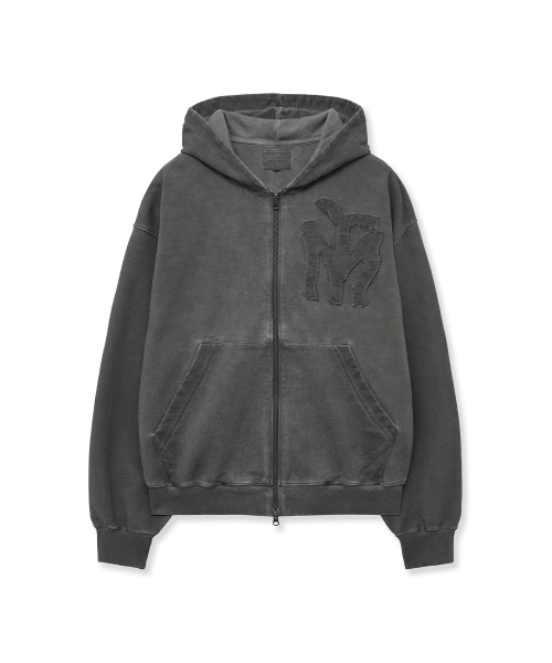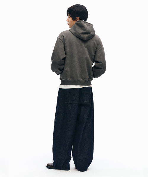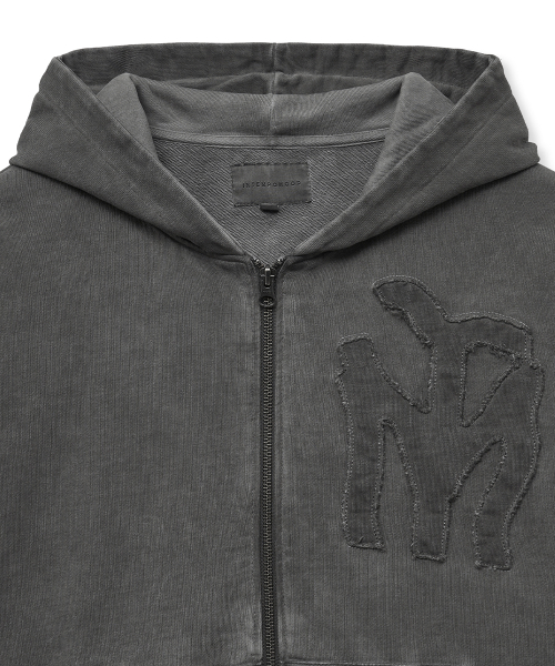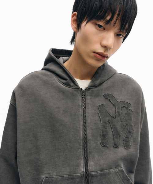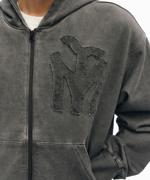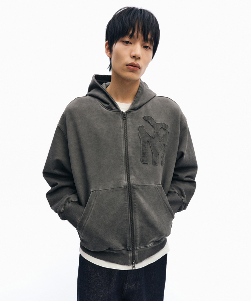 두들 로고 워시드 후드 집업_차콜