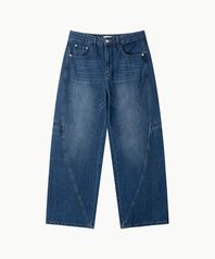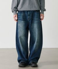 WIDE CURVED DENIM PANTS (WASHED DARK BLUE)