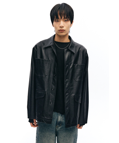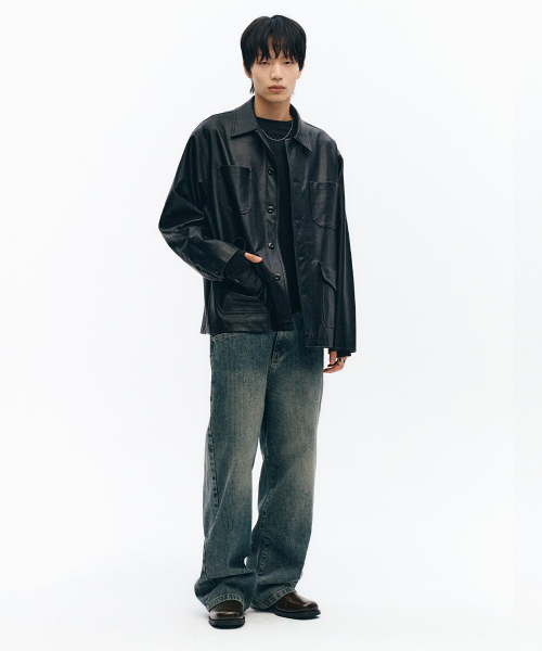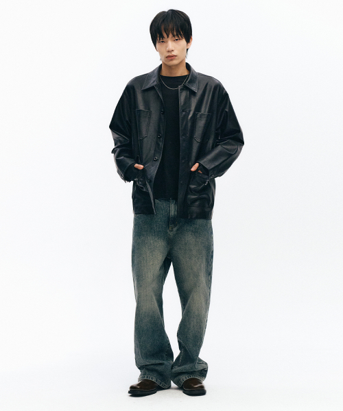 디스트레스 텍스처 와플 롱슬리브_빈티지 차콜
