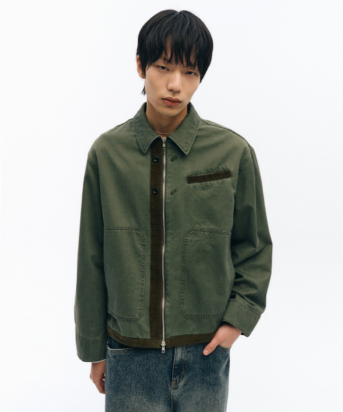 메카닉 버튼 디테일 재킷_카키