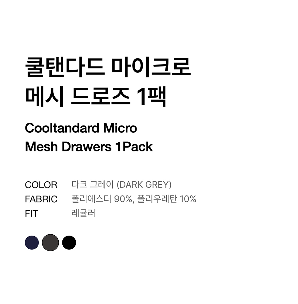 쿨탠다드 마이크로 메시 드로즈 1팩 [다크 그레이]