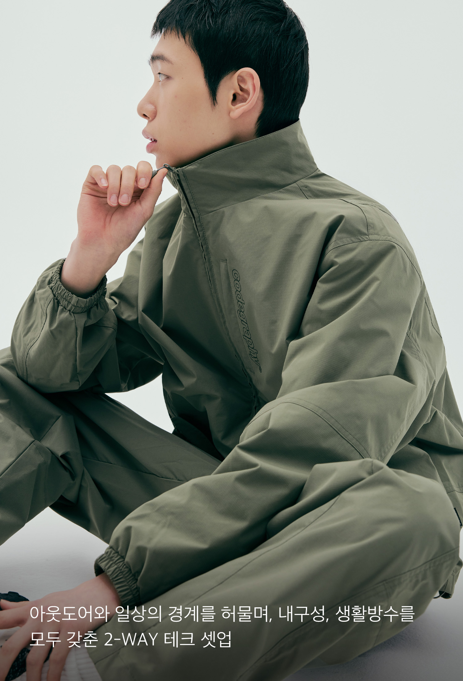 배색 테크 숏 자켓_차콜BDF 셋업