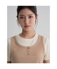 골지 나시 레이어드 반소매 티셔츠 아이보리