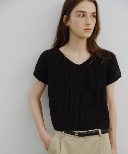 Cap sleeve V-neck knit