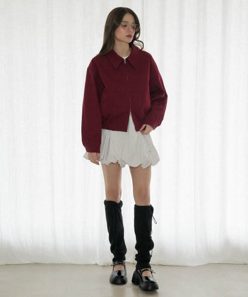 [LINE] 체크 쉬폰 벌룬 미니 스커트 (Light Blue)