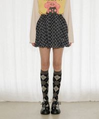 [LINE] 체크 쉬폰 벌룬 미니 스커트 (Black)