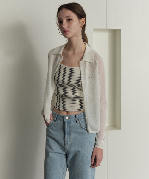 시스루 카라 가디건 아이보리