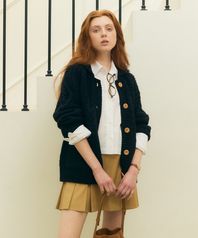 울 루즈핏 카라 니트 자켓 다크네이비