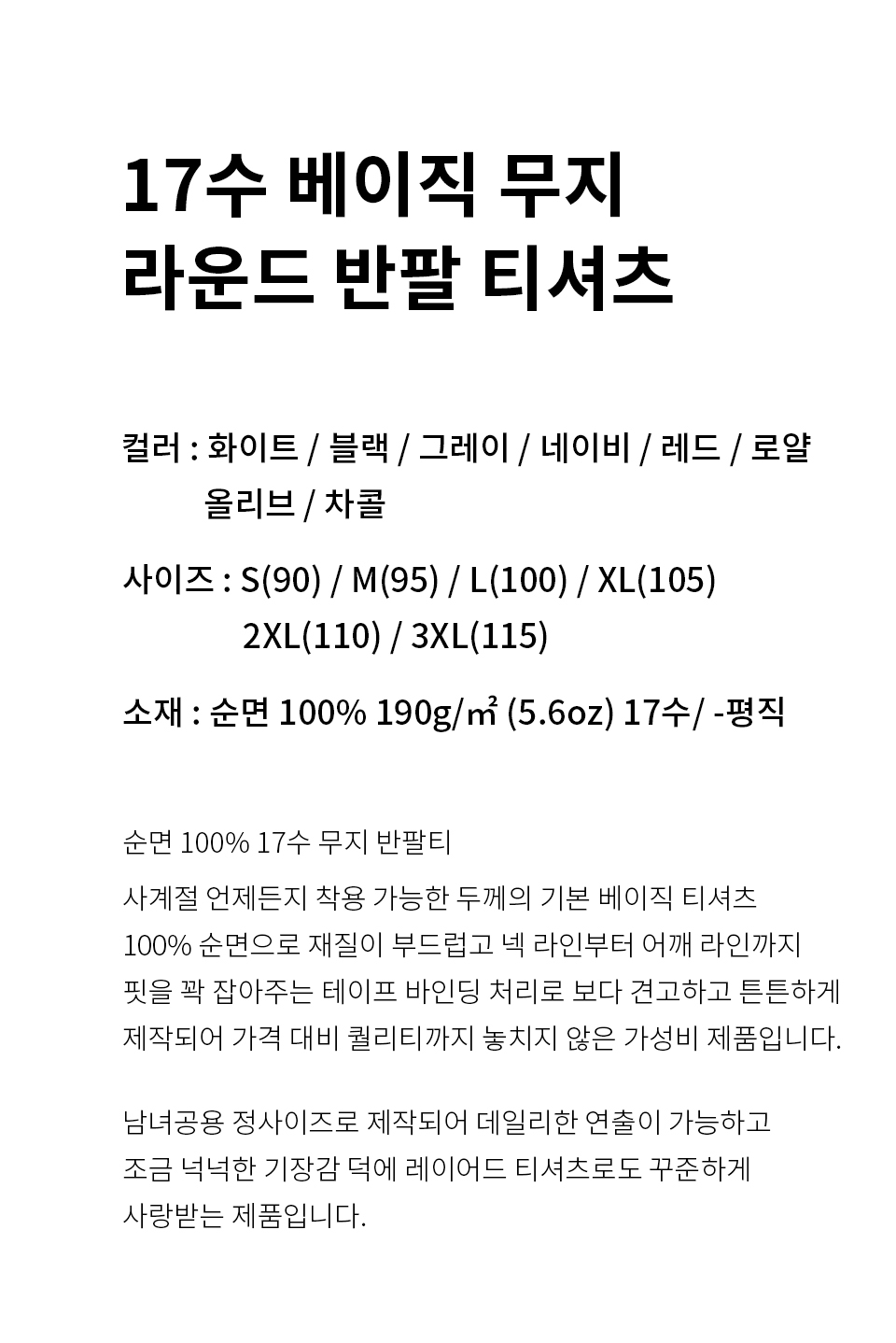 [2PACK] 17수 베이직 무지 레이어드 반팔 티셔츠_일반 기장
