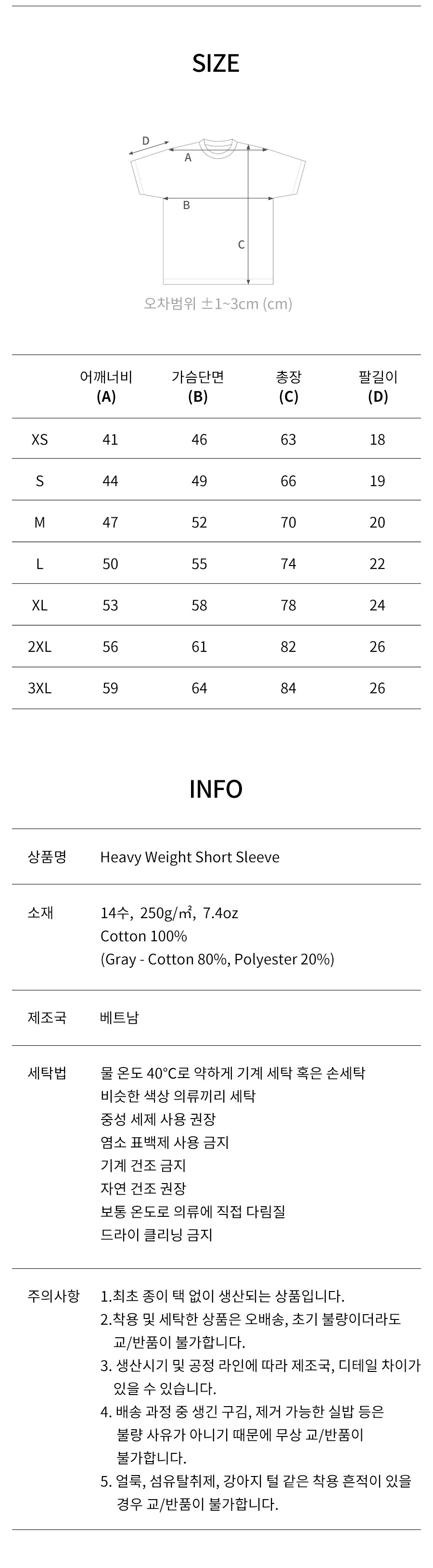 [3PACK] 14수 7.4oz 헤비웨이트 라운드 오버핏 무지 반팔 티셔츠
