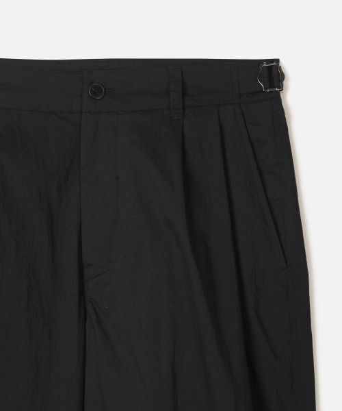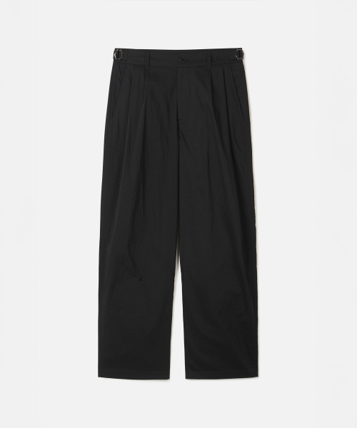 A : 투 턱 디테일이 주는 여유로운 실루엣을 살려 셋업 자켓과 함께 포멀하게 연출하거나, 셔츠를 넣어 입는 턱인 스타일로 사이드 어드저스트 포인트를 살려보세요. 티셔츠와 스니커즈를 매치하면 세련된 캐주얼 룩이 완성됩니다.