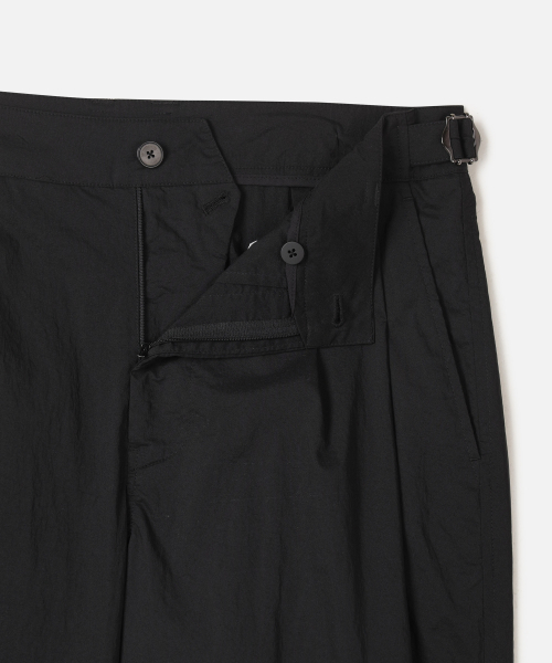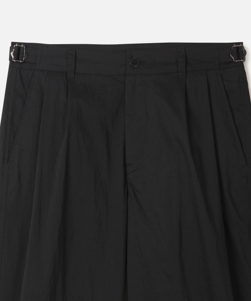 여유로운 실루엣의 더블 플리츠 디자인과 허리 사이드 어드저스트 디테일을 적용하여 활동성과 실루엣 조절 기능을 모두 잡았습니다. 전면 이중 단추 여밈 구조로 안정적인 핏을 유지해주며, 셋업은 물론 단품으로도 훌륭한 활용도를 자랑합니다.