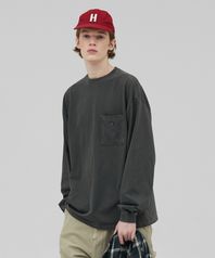 [M~4XL] 피그먼트 롱 슬리브 포켓 티셔츠_차콜