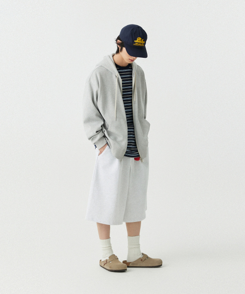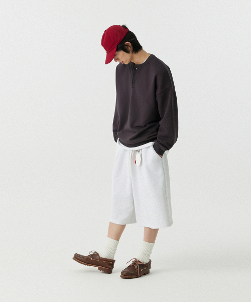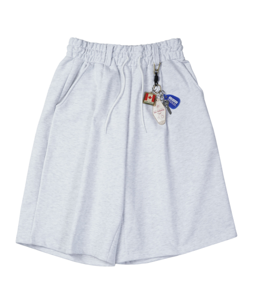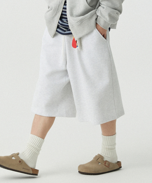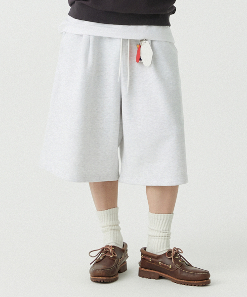 [M~4XL] 벨트 루프 오버핏 스웻 쇼츠_화이트 멜란지