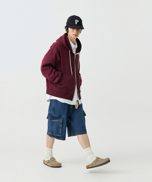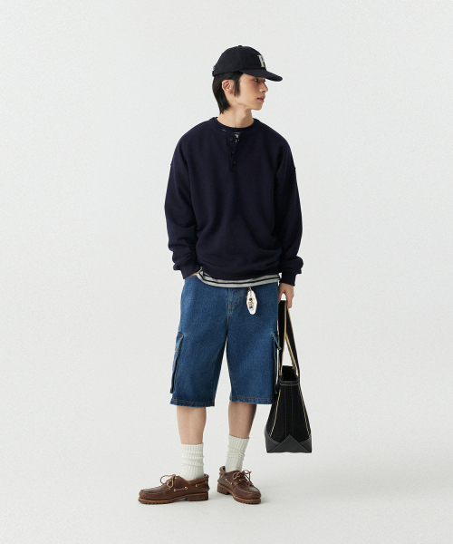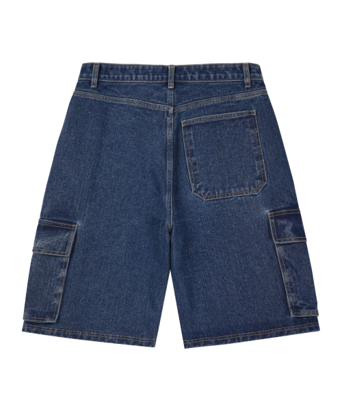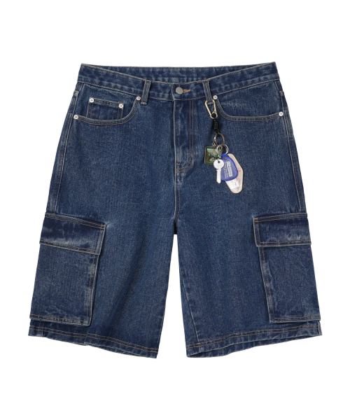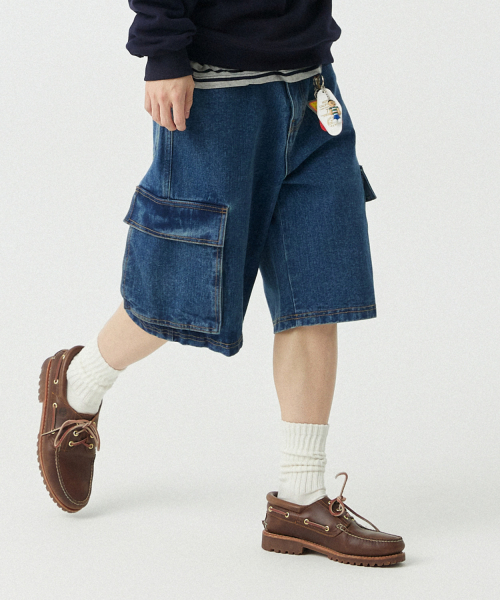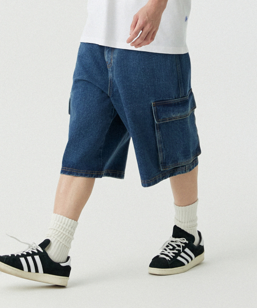 [M~4XL] 카고 포켓 버뮤다 데님 팬츠_블루