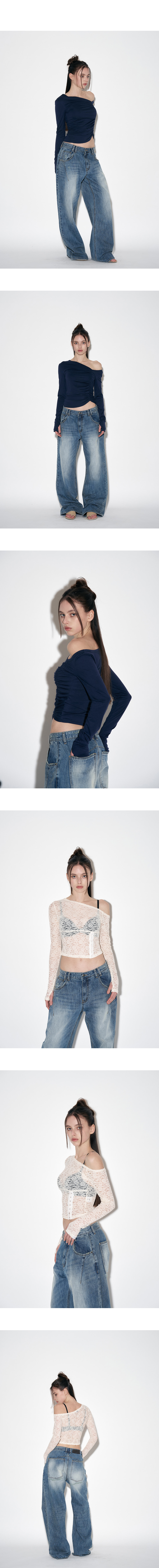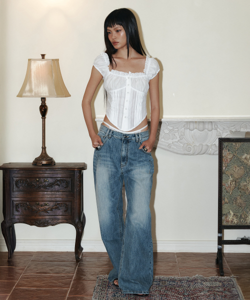 25Damaged Washing Wide Denim (Washed Blue)