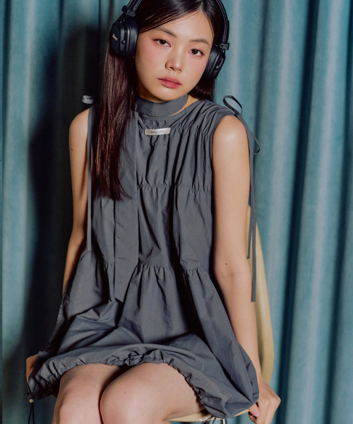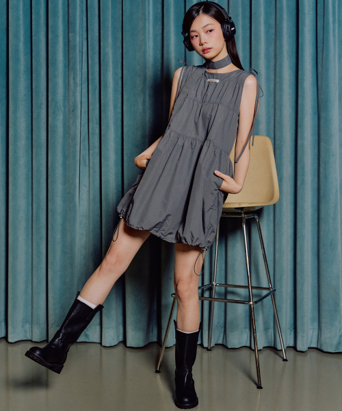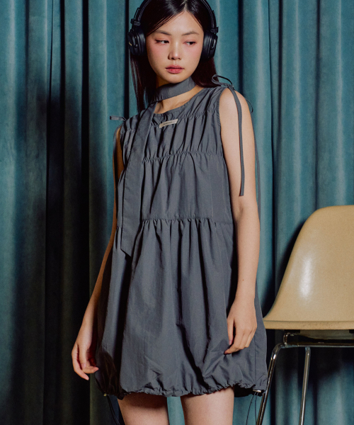 레인 벌룬 미니 원피스 [CHARCOAL]