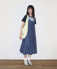 LACE SHIRRING DRESS BLUE