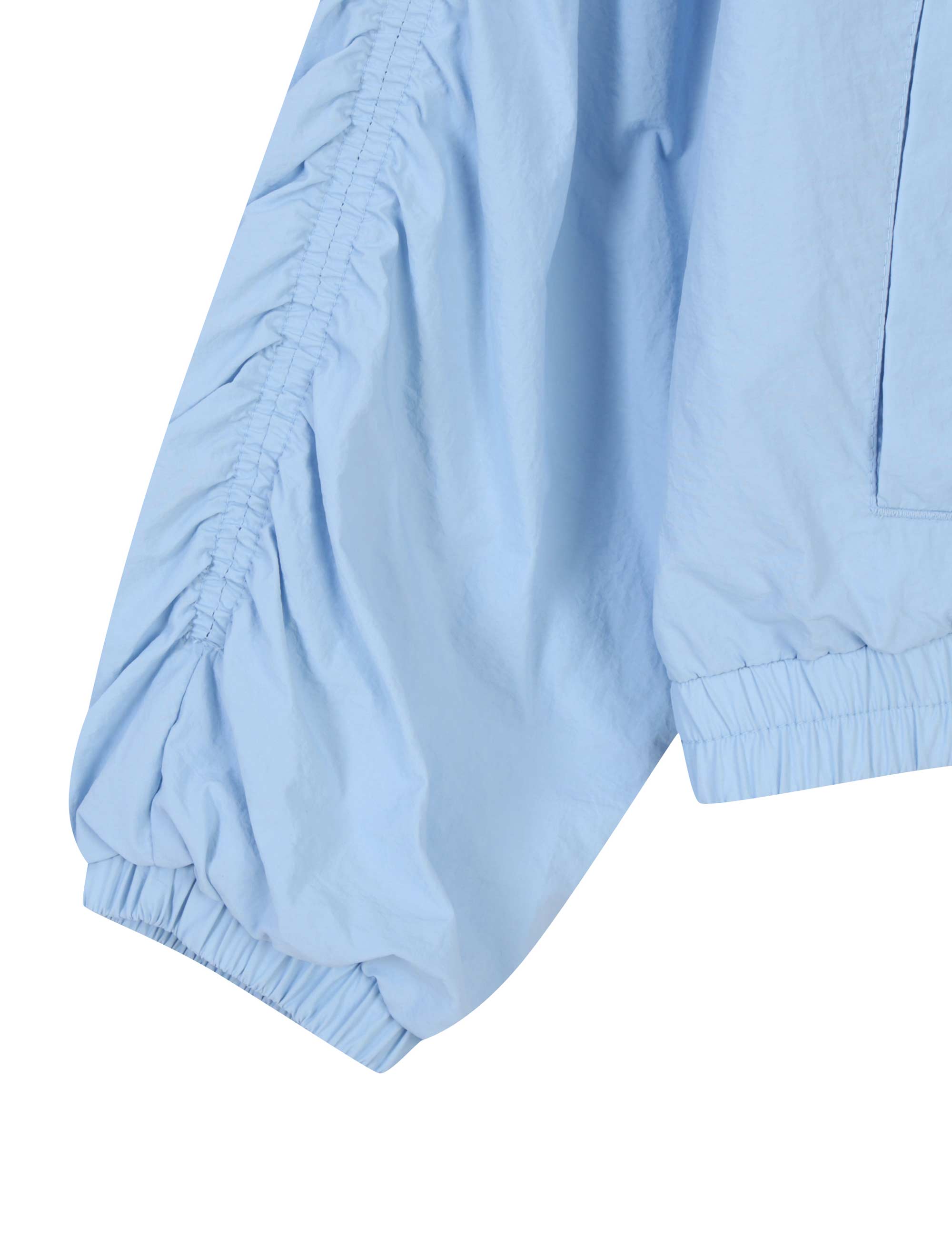 -소매에 잡힌 자연스러운 셔링은 여성 스러우면서도 크롭된 기장과 오버핏으로 힙한 무드를 연출 할 수 있는 윈드브레이커 점퍼 스타일