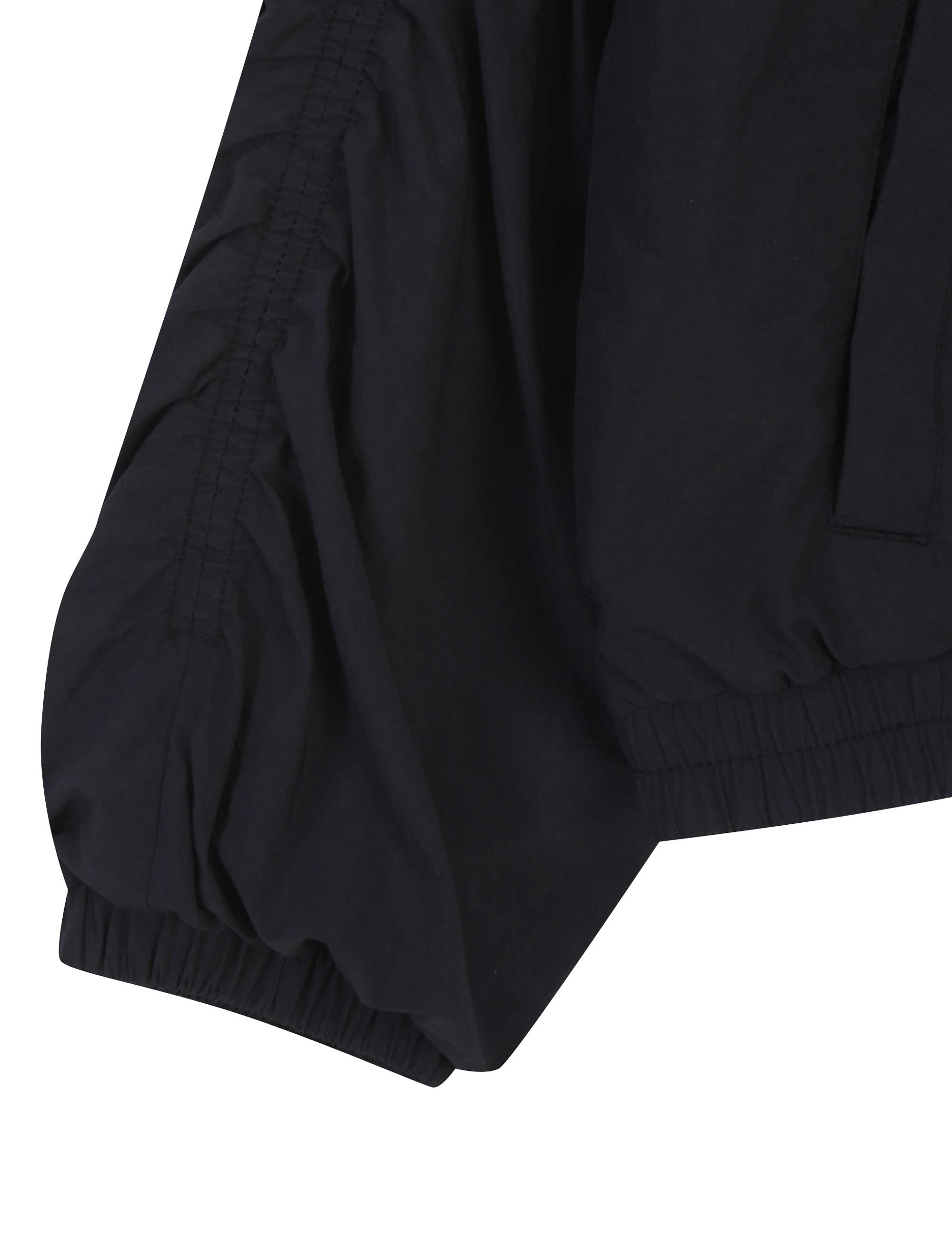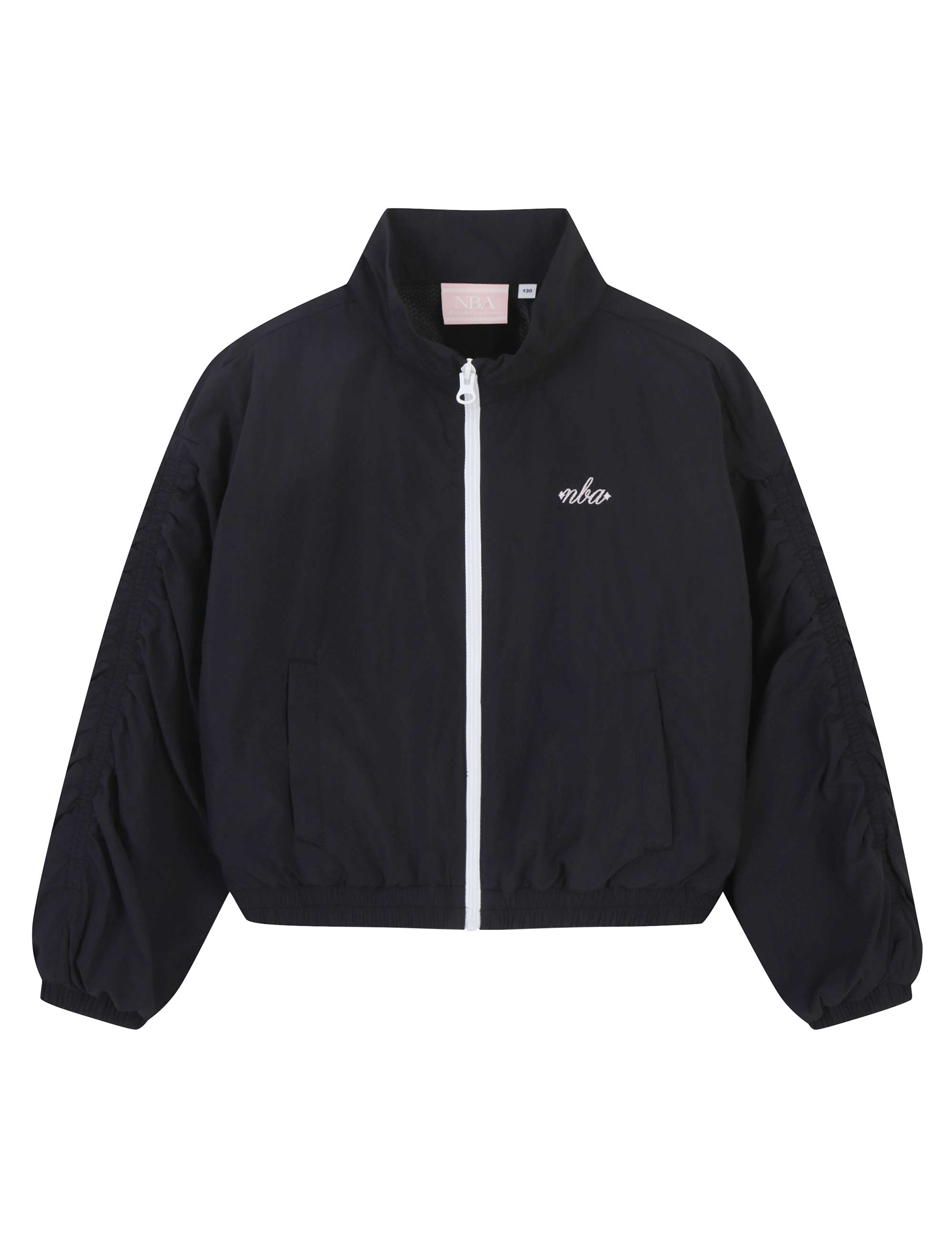 -소매에 잡힌 자연스러운 셔링은 여성 스러우면서도 크롭된 기장과 오버핏으로 힙한 무드를 연출 할 수 있는 윈드브레이커 점퍼 스타일