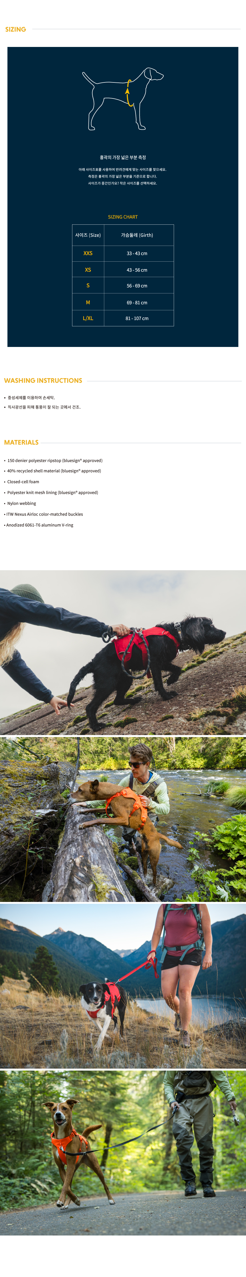 러프웨어(RUFFWEAR)는 그 이름만으로도 애견용품을 대표하는 최고급 브랜드로 미국 오리건주 밴드에 위치했습니다. 러프웨어의 철학은 개와 사람이 동료애를 느끼며 아웃도어 활동을 안전하고 편안하게 할 수 있는 최고급 아웃도어 애견용품을 만드는 것이며, 이를 위해 제품의 디자인, 소재를 그 목적에 맞게 설계/제작하고 있으며 지속적인 제품 개발을 통해 최고의 애견용품 업체로의 위상을 굳건해 하고 있습니다.