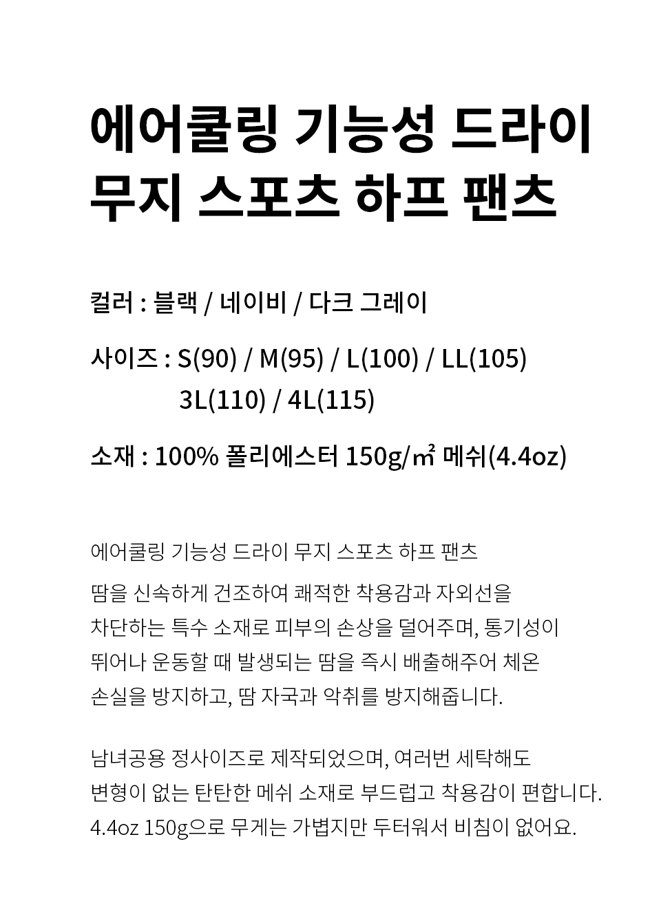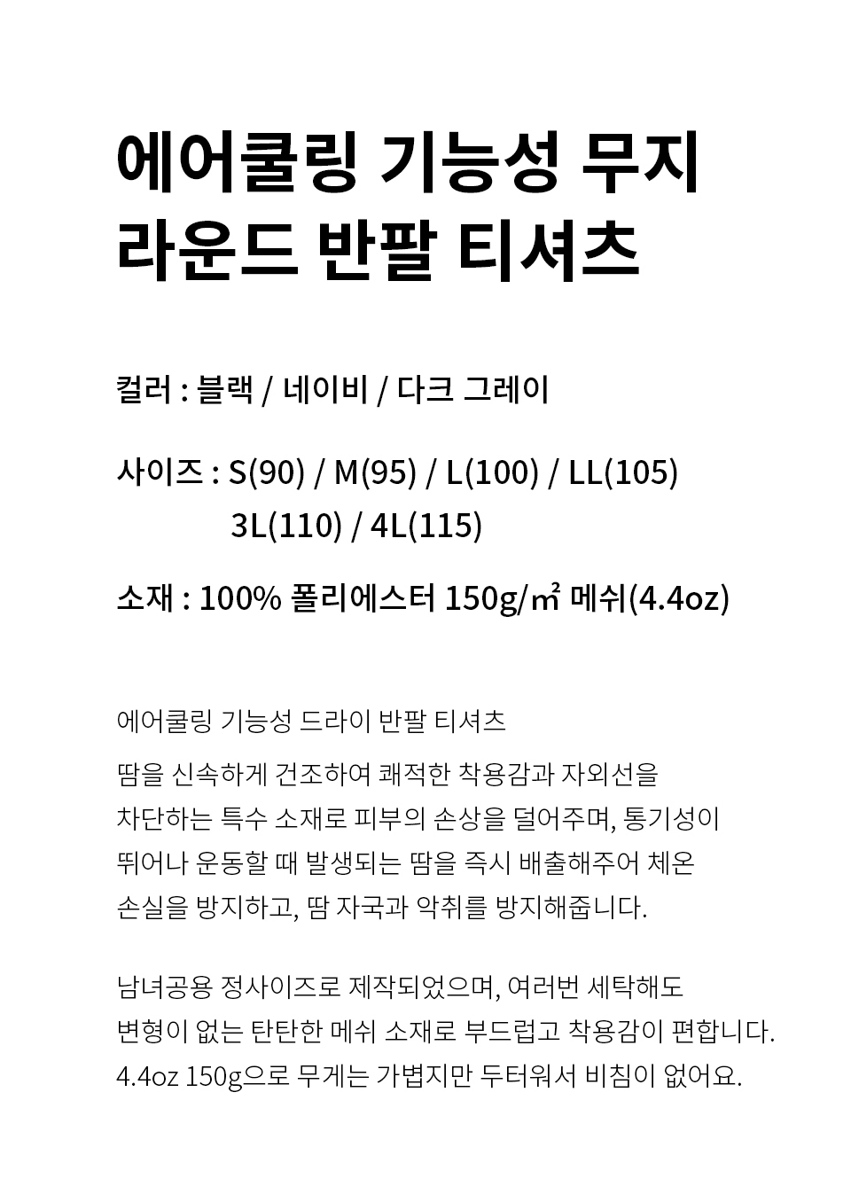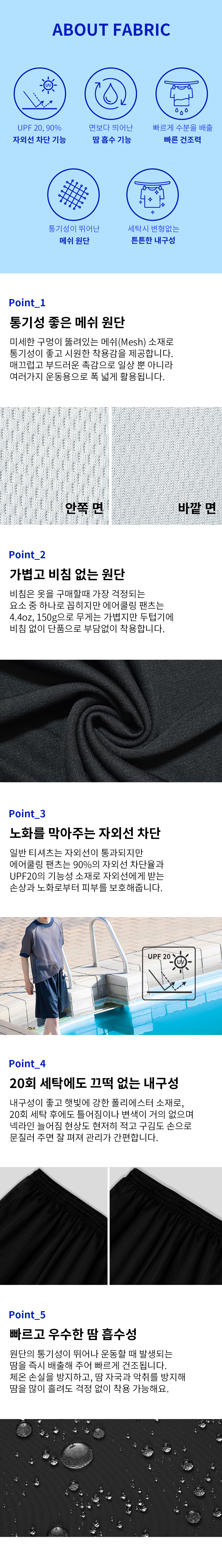 에어쿨링 드라이 기능성 쿨론 무지 반팔 반바지 세트