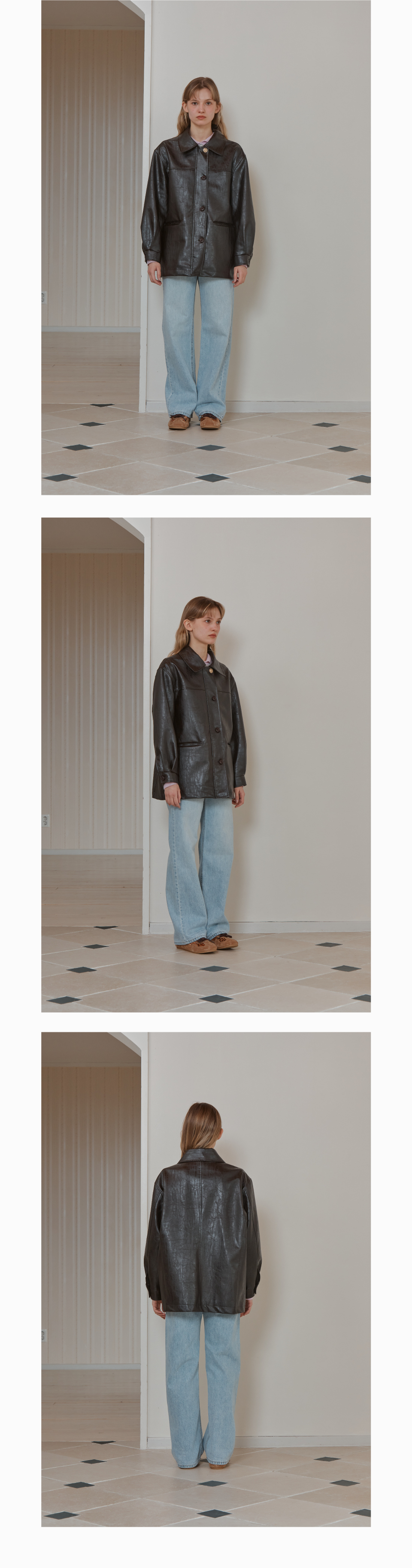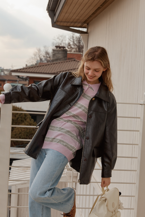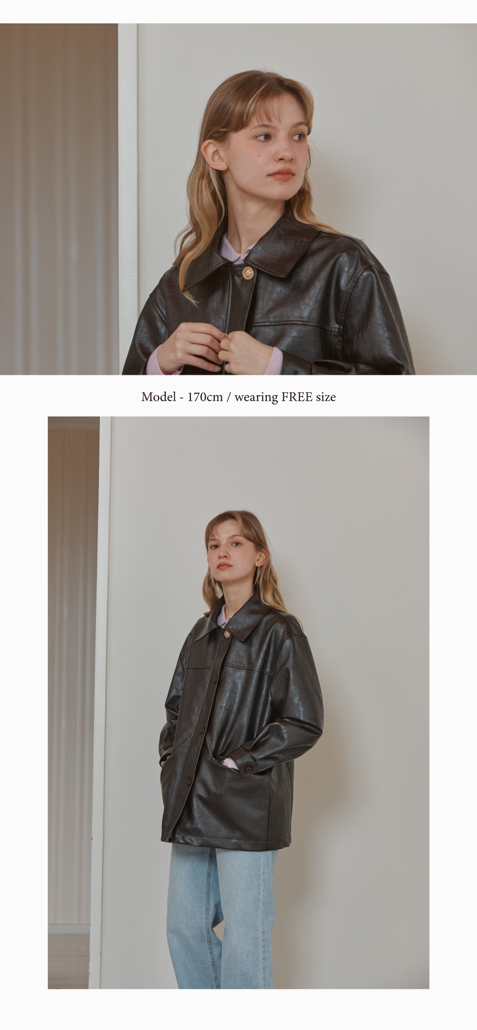 BUTTON CLASSIC LEATHER JACKET_BROWN