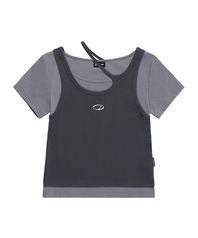 오드 시그니처 2WAY 레이어드 티셔츠 - GRAY/CHARCOAL