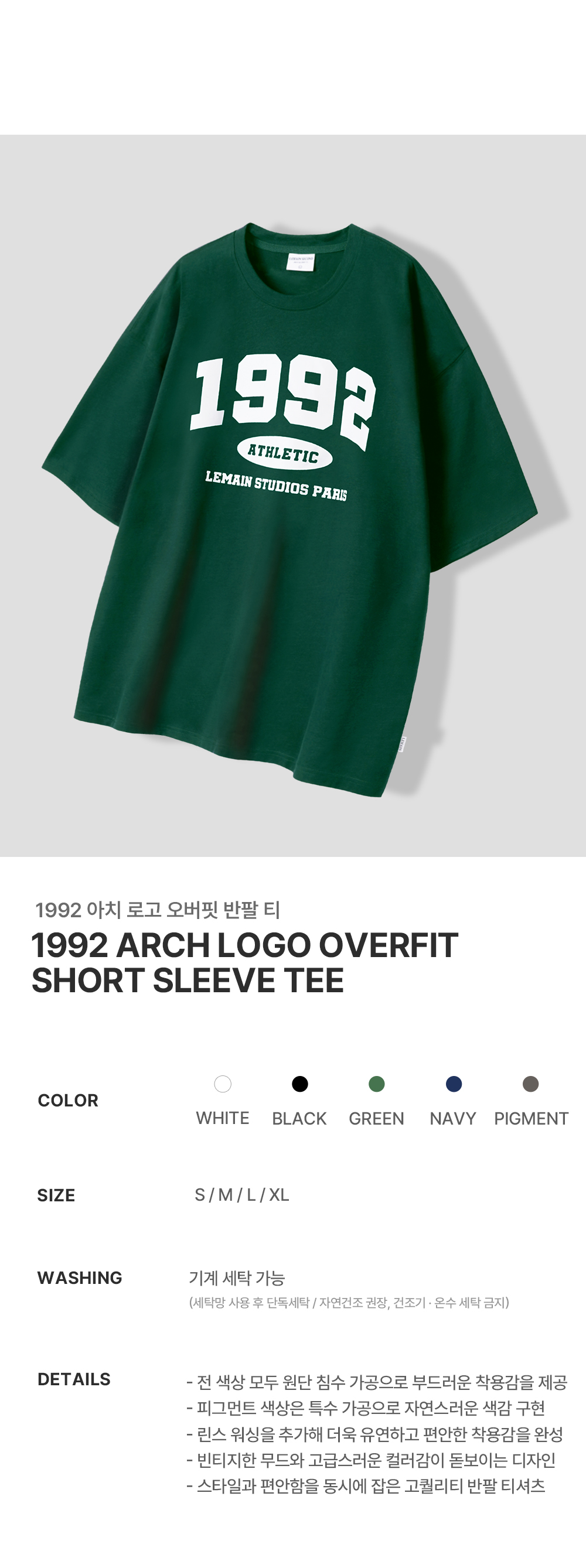 1992 아치 로고 오버핏 반팔 티_5COLOR