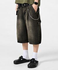 바이오워싱 카펜터 버뮤다 데님 팬츠_블랙