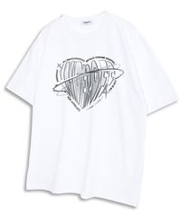 오버핏 크루넥 메탈릭 크롬 하트 로고 반팔 티셔츠 화이트