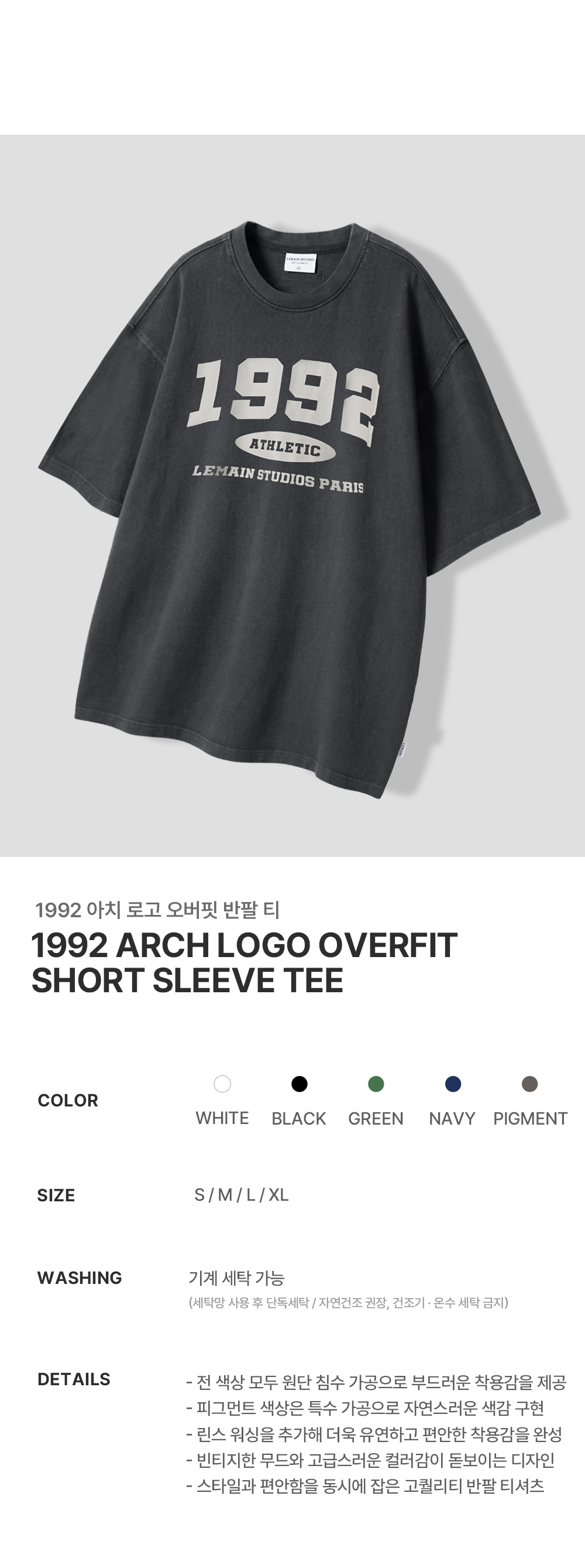 1992 아치 로고 오버핏 반팔 티 [피그먼트]