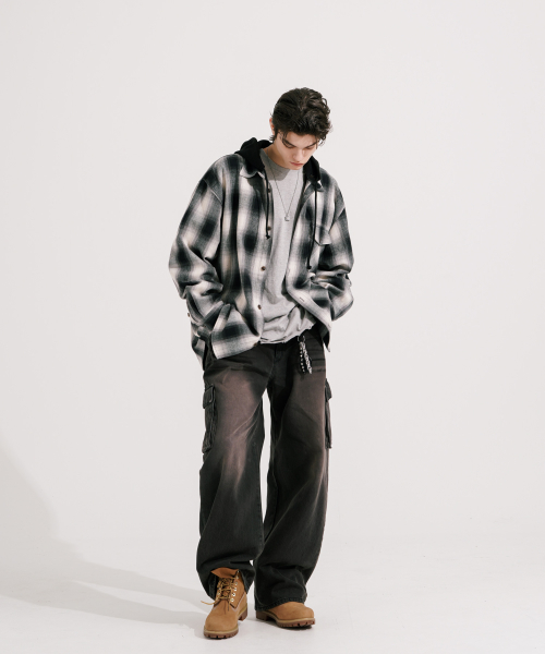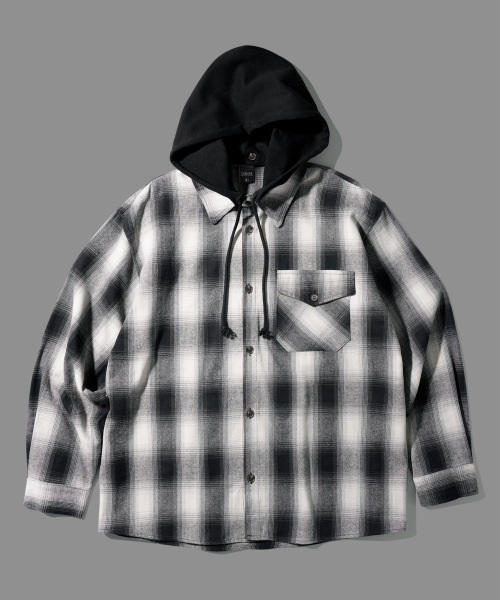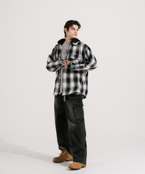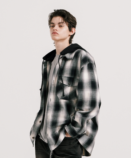 스크린 후드 체크셔츠 블랙 KMLS6865