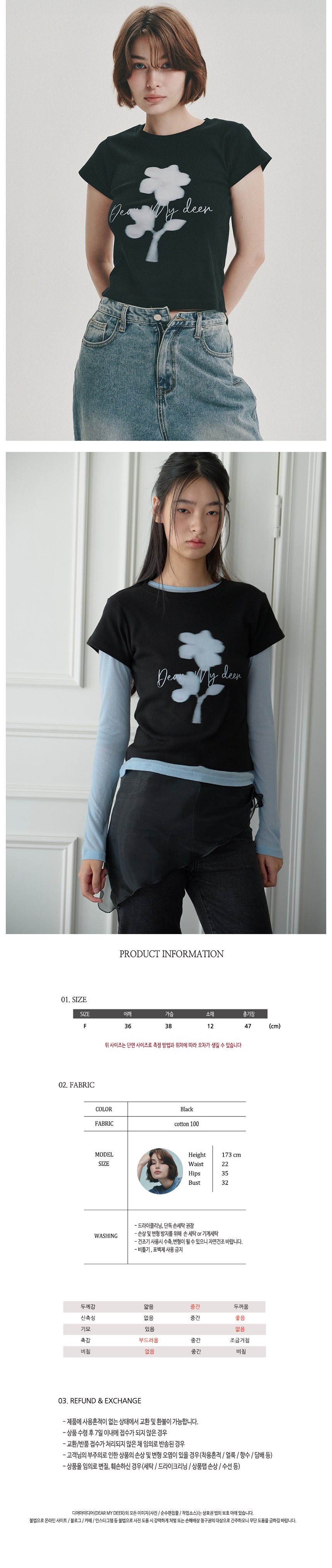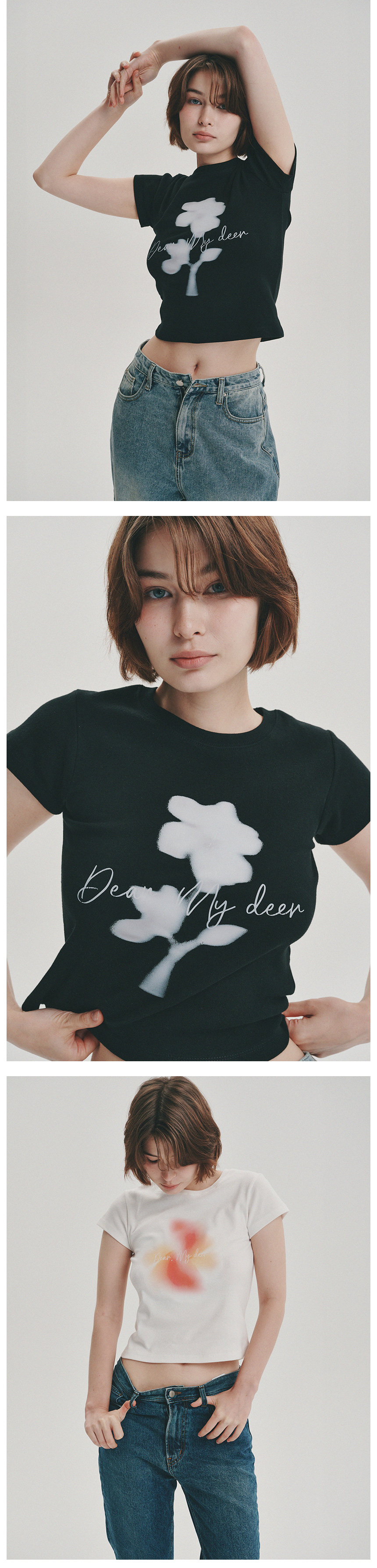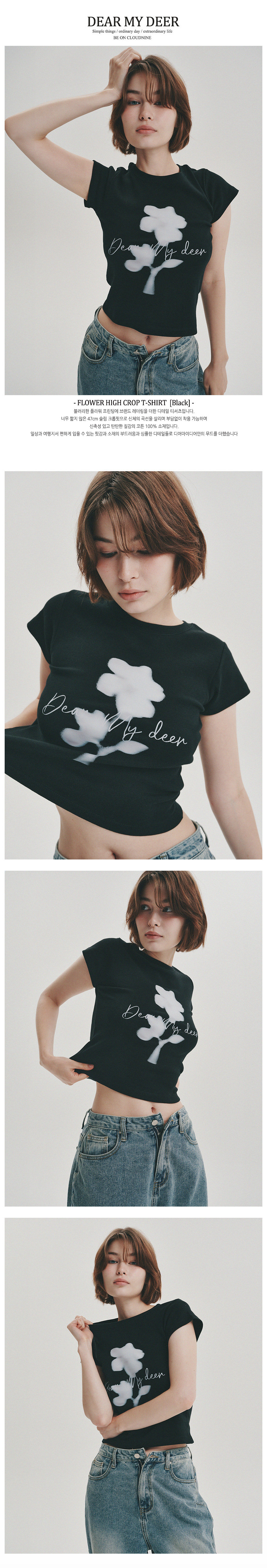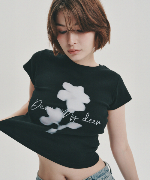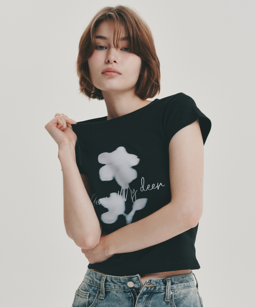 플라워 하이 크롭 티셔츠_ 블랙