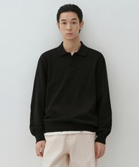 워셔블 수피마 코튼 긴소매 니티드 폴로 셔츠 [블랙]