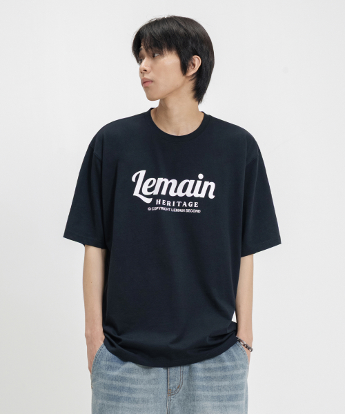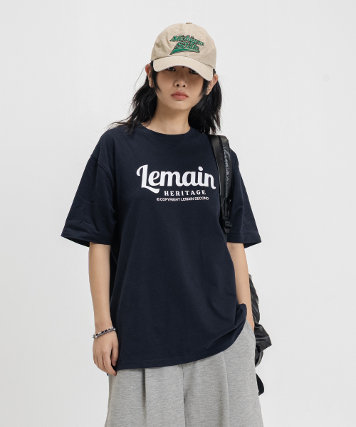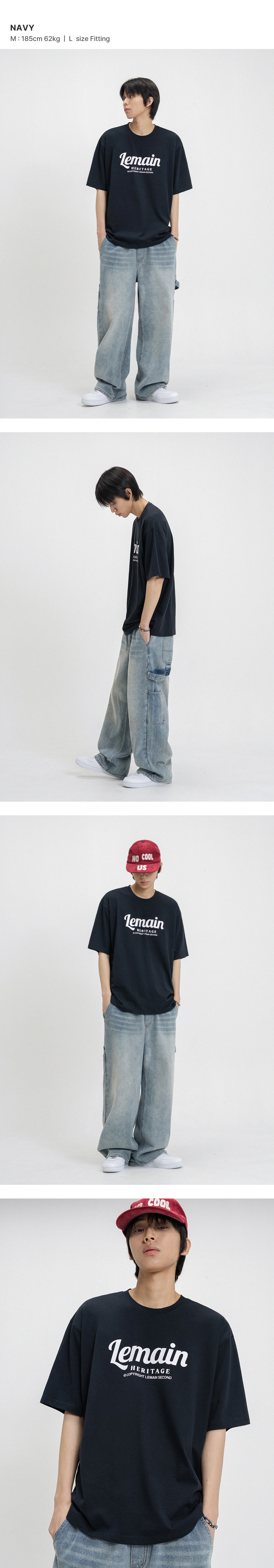 헤리티지 로고 오버핏 반팔 티 [네이비]
