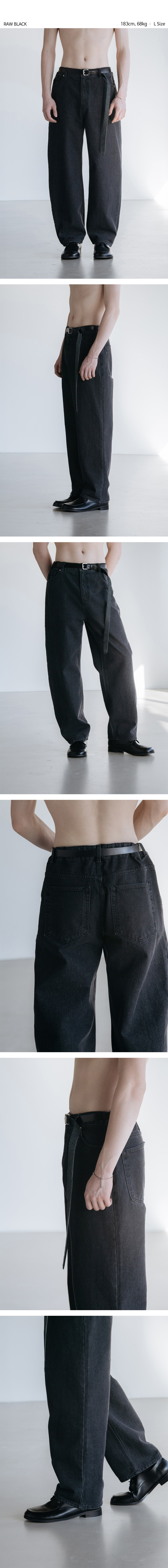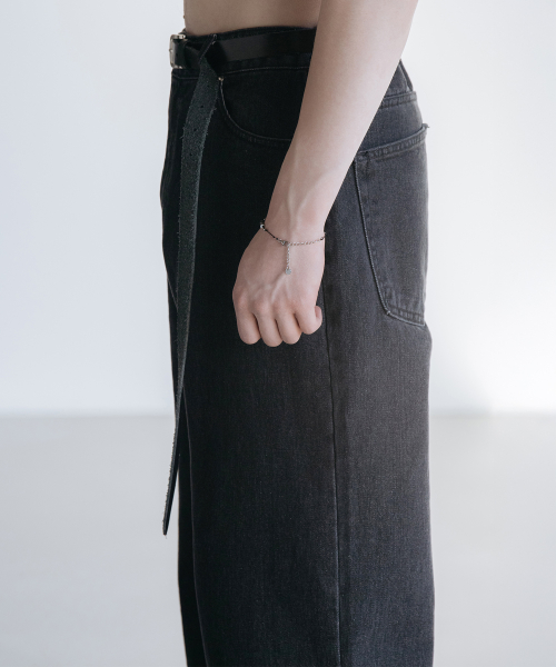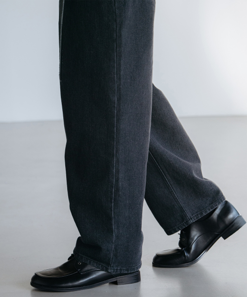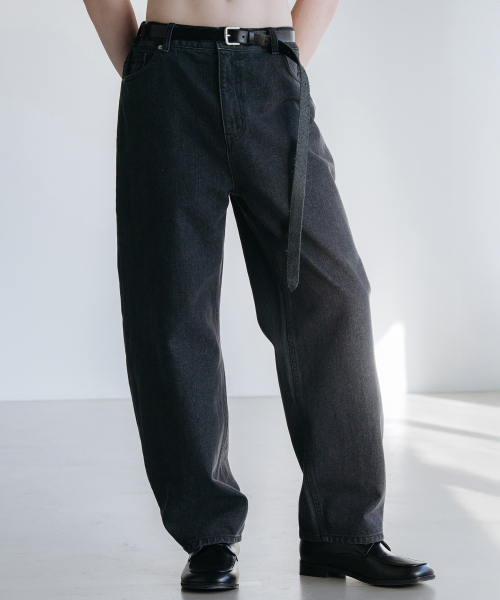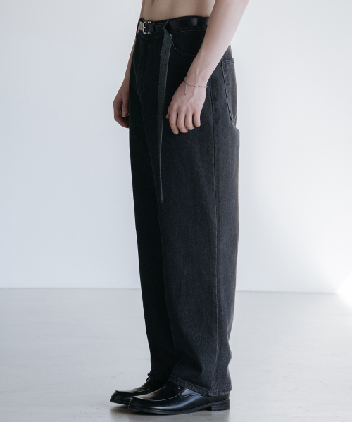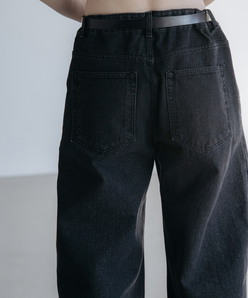 다트 워싱 레귤러 와이드 데님 팬츠 [로우 블랙]