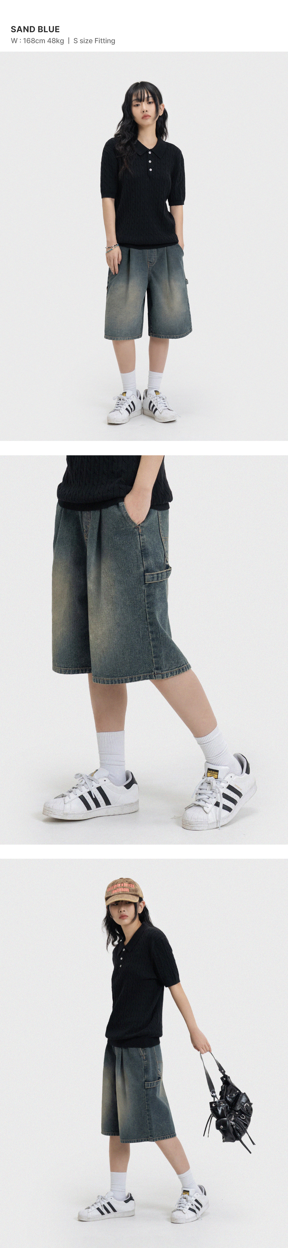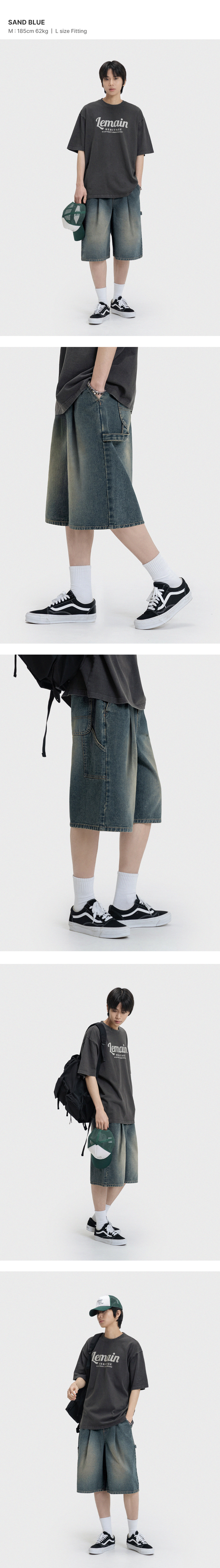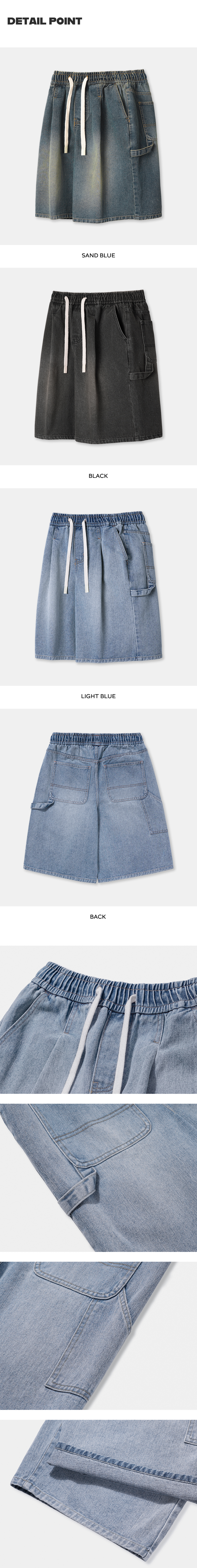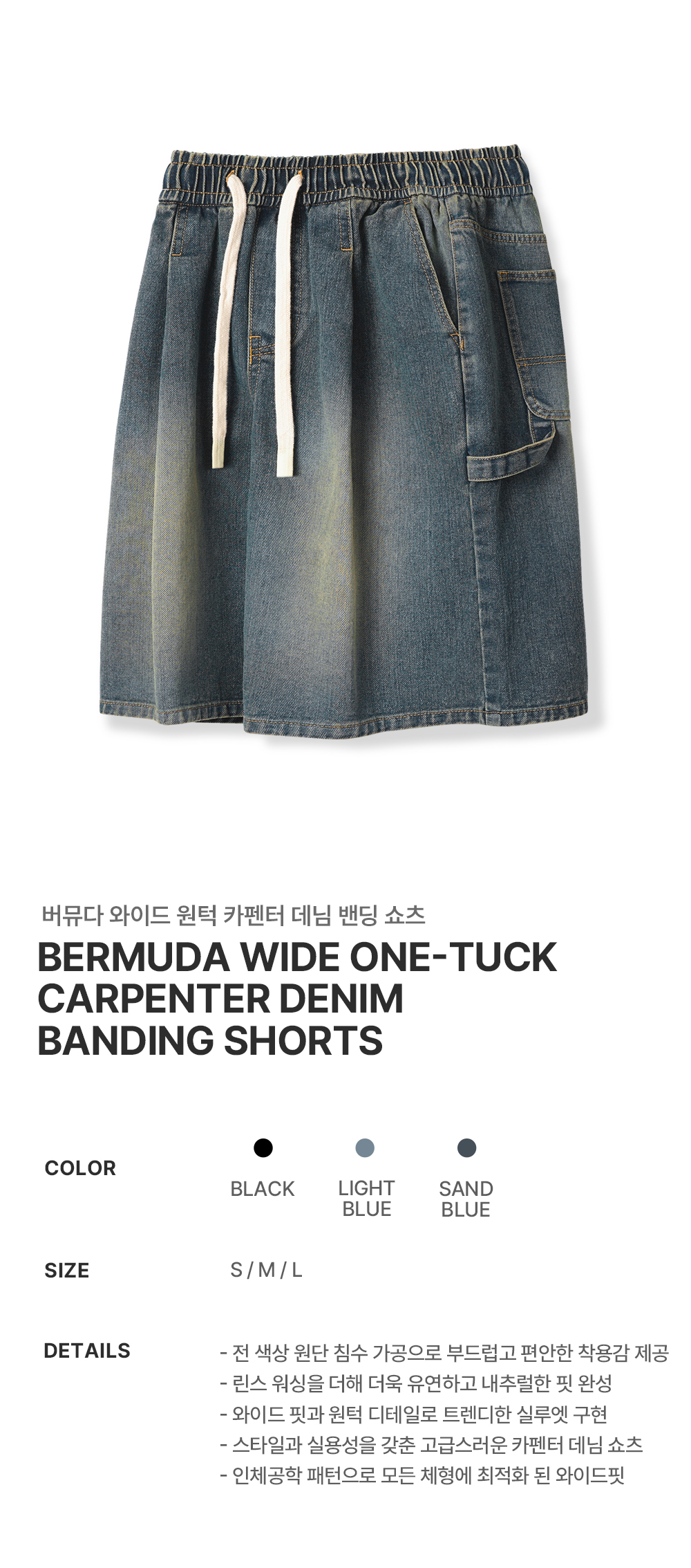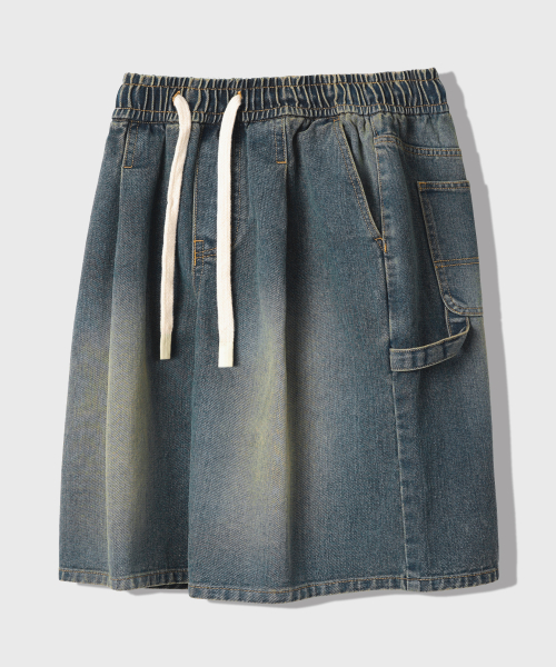 버뮤다 와이드 원턱 카펜터 데님 밴딩 쇼츠 [샌드블루]