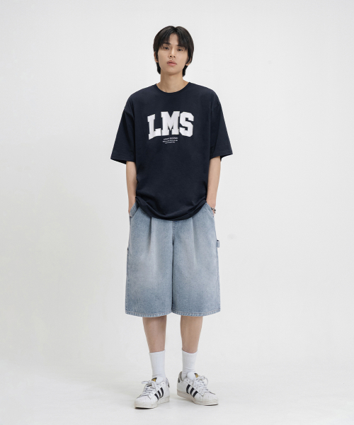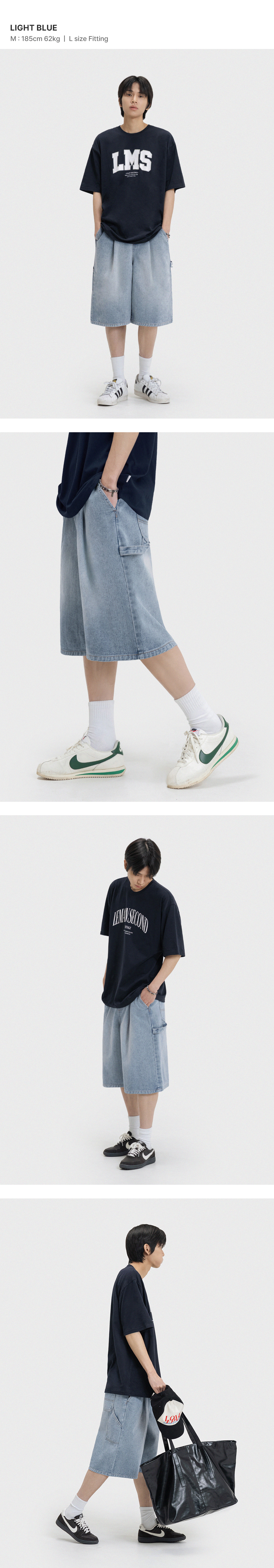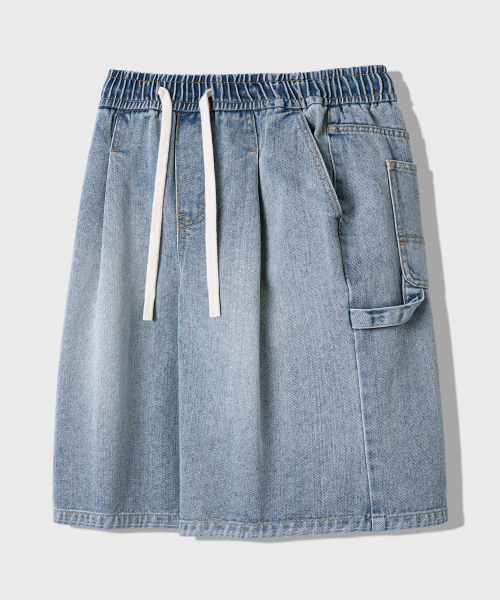 버뮤다 와이드 원턱 카펜터 워시드 데님 밴딩 쇼츠 [연청]